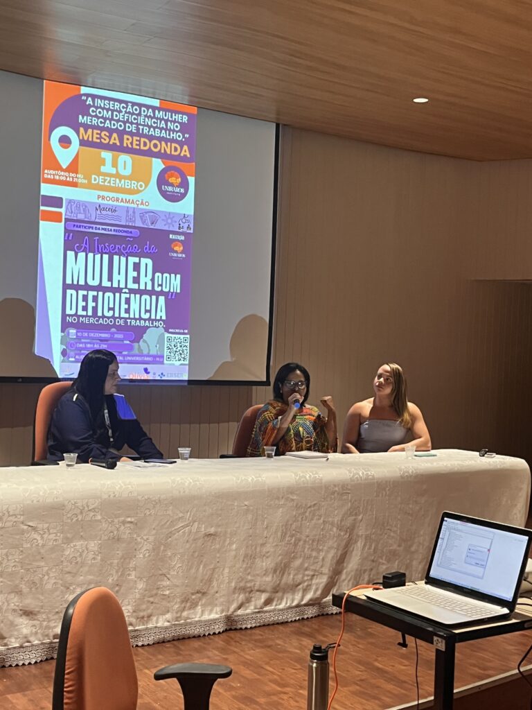Nesta quarta-feira, a ADEFAL marcou presença na mesa redonda “A inserção da mulher com deficiência no mercado de trabalho”, reforçando seu compromisso com a inclusão, a igualdade de oportunidades e a defesa de direitos. O evento foi organizado pelo Instituto UNIRAROS, realizado no auditório do Hospital Universitário e conduzido por Priscylla Nolasco, presidente do Instituto.