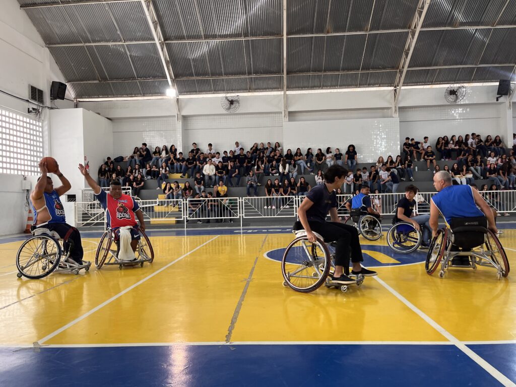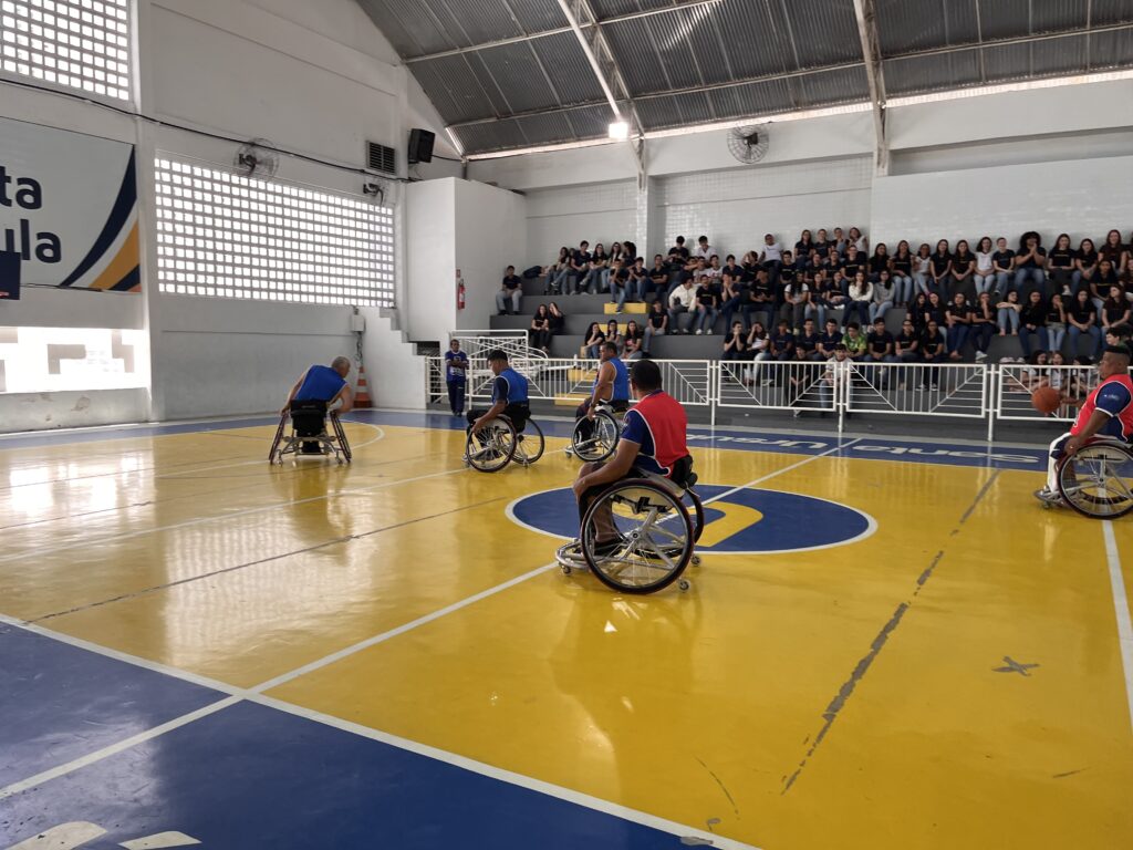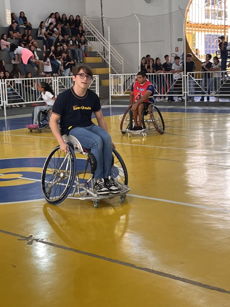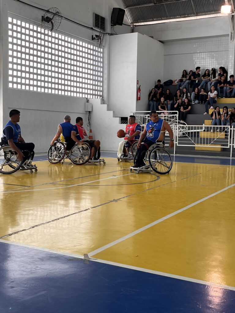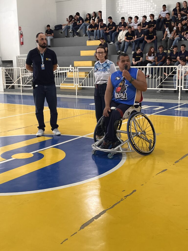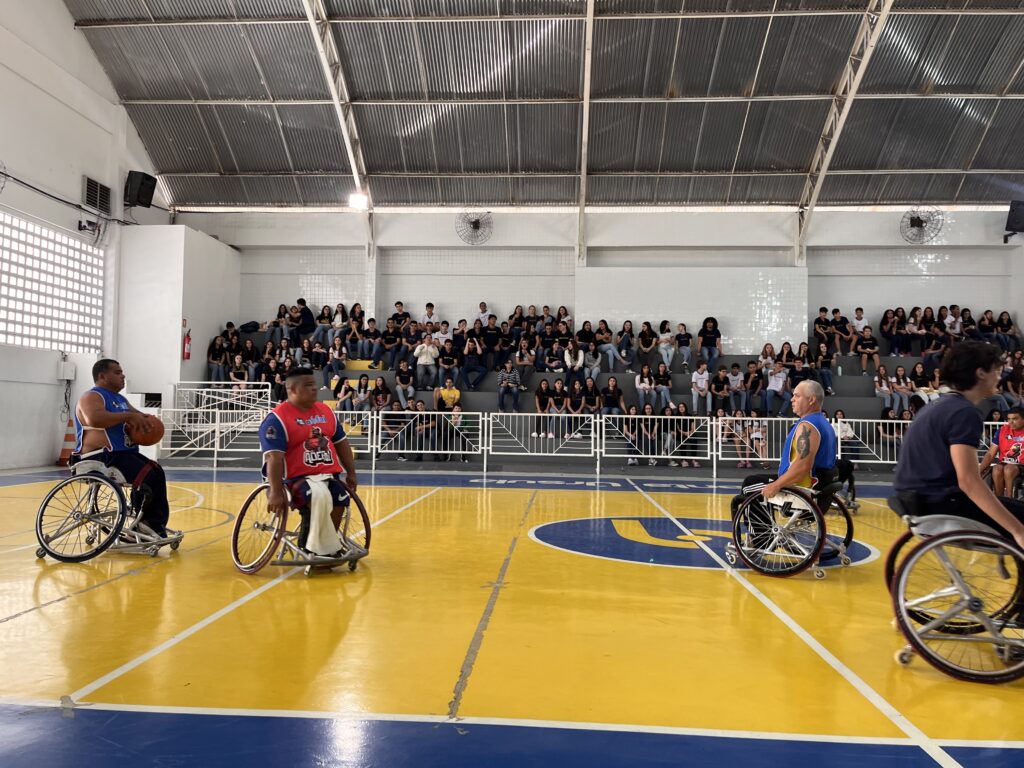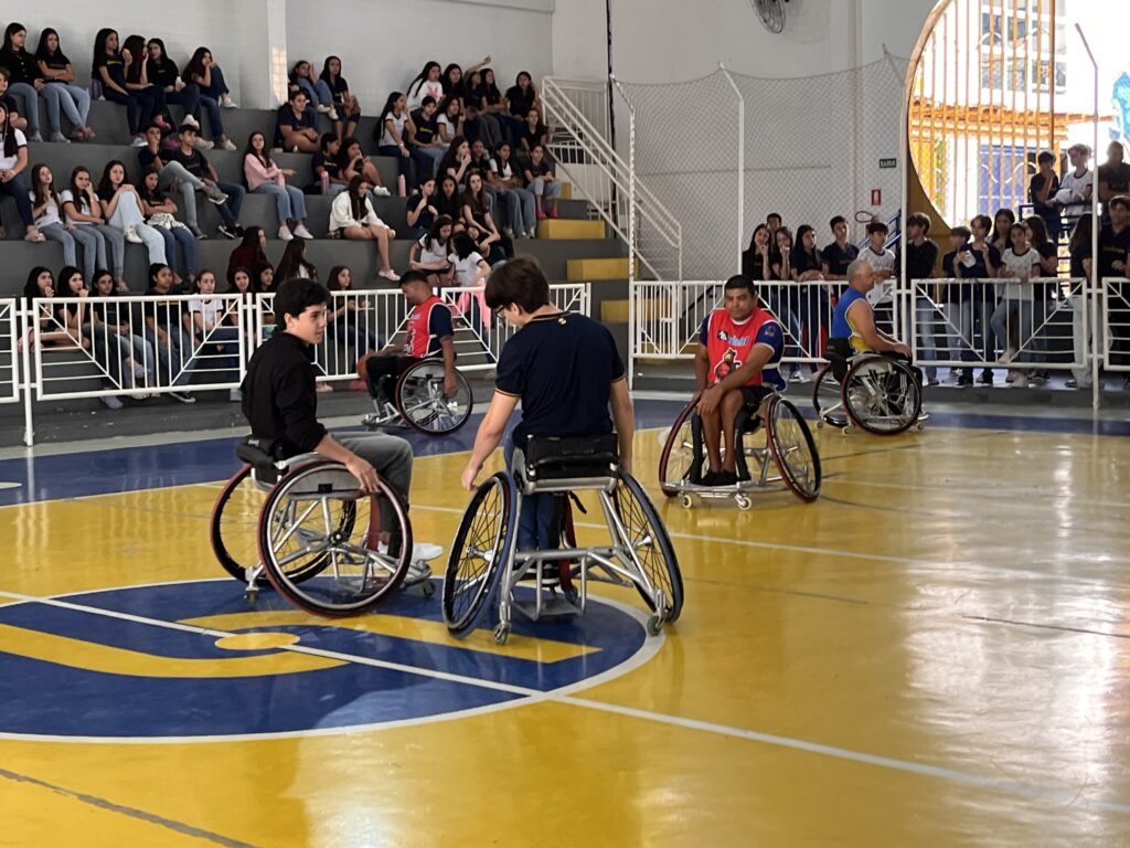 O momento foi marcado por uma vivência inclusiva e transformadora, que contou com a participação da equipe de basquete em cadeiras de rodas, proporcionando aos alunos a experiência de praticar um esporte adaptado e refletir sobre empatia, respeito e superação.